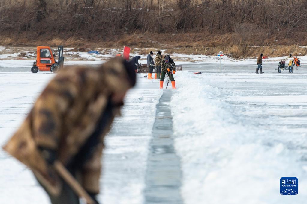 目前,“冰城”哈爾濱市已進(jìn)入“采冰季”。工人從封凍的松花江采冰,并將冰塊運往哈爾濱市的重要景點(diǎn)等地,用于冰雪景觀(guān)的搭建制作。