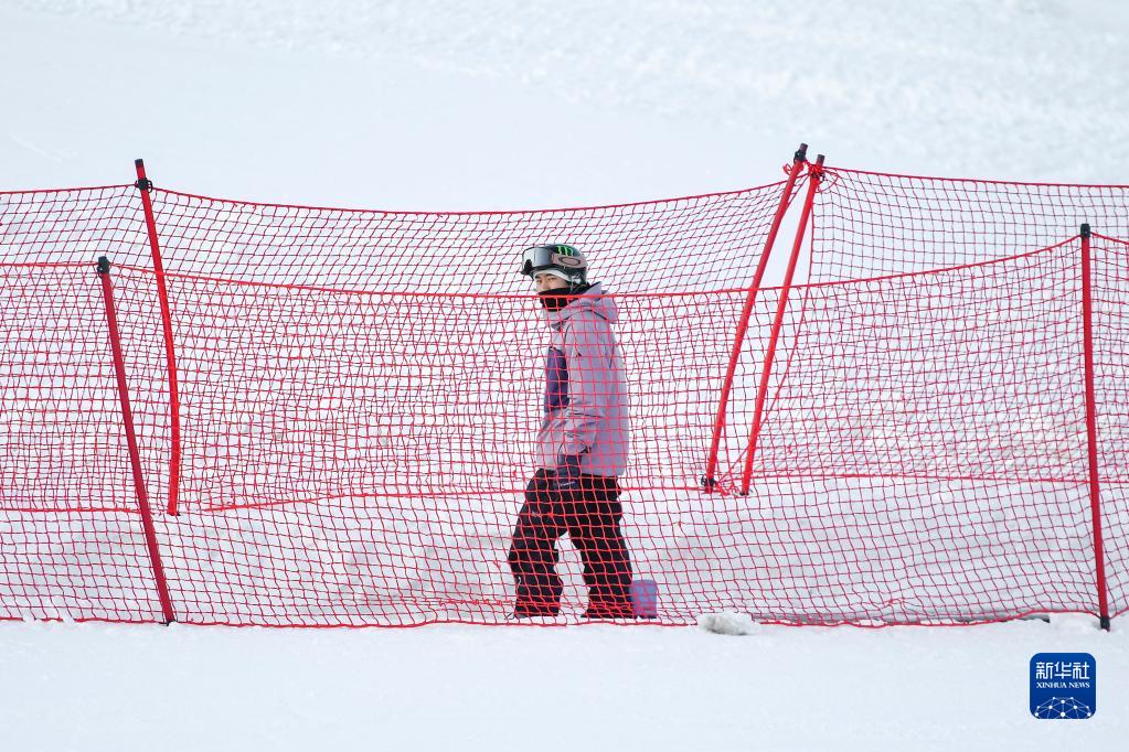 北京冬奧會(huì )單板滑雪男子大跳臺冠軍蘇翊鳴在V-PARK地形公園內乘坐“魔毯”(12月10日攝)。