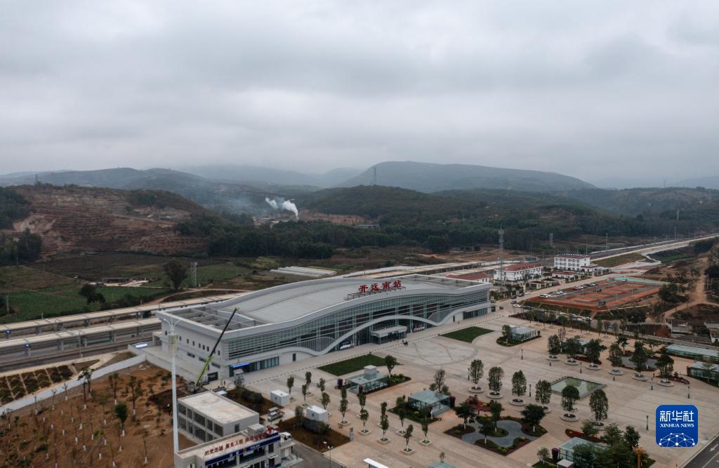 這是12月14日拍攝的彌蒙高鐵開(kāi)遠南站(無(wú)人機照片)。