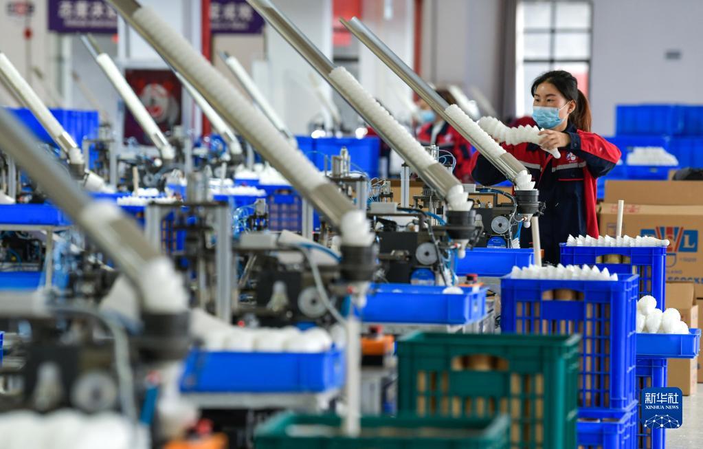 在錦屏經(jīng)濟開(kāi)發(fā)區貴州亞獅龍體育文化產(chǎn)業(yè)發(fā)展有限公司羽毛球生產(chǎn)基地,工人在生產(chǎn)羽毛球(12月19日攝)。