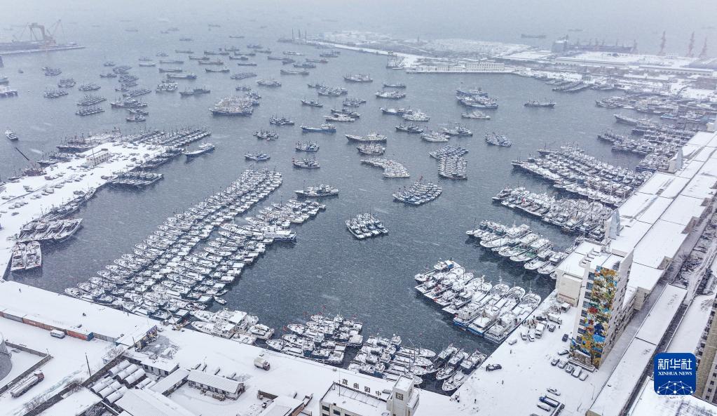 受強冷空氣影響,山東省榮成市近日出現大風(fēng)降雪天氣。出海作業(yè)漁船紛紛??繚O港,躲避寒潮、風(fēng)雪。