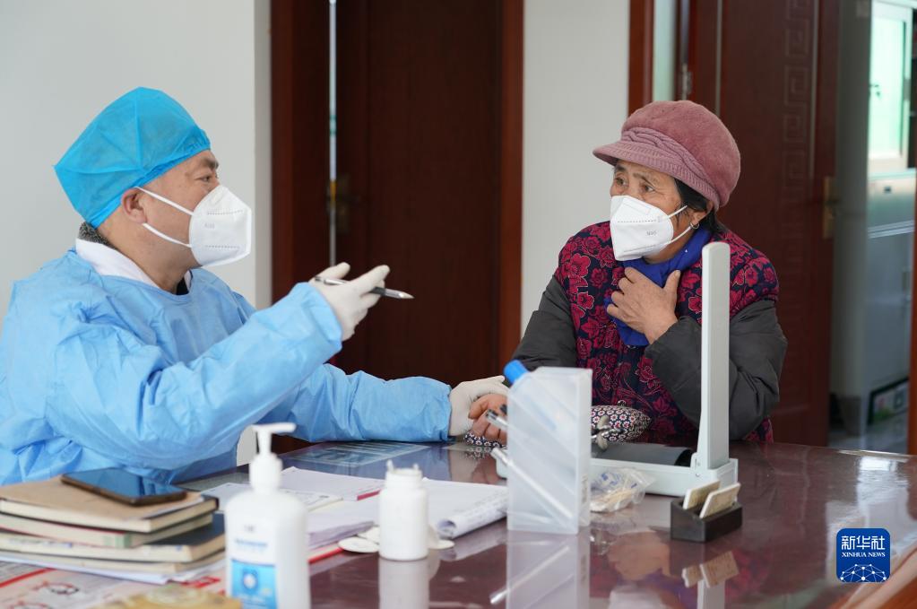 12月22日,在周至縣馬召鎮富饒村東富饒衛生室內,村醫在為發(fā)熱患者進(jìn)行診療。
