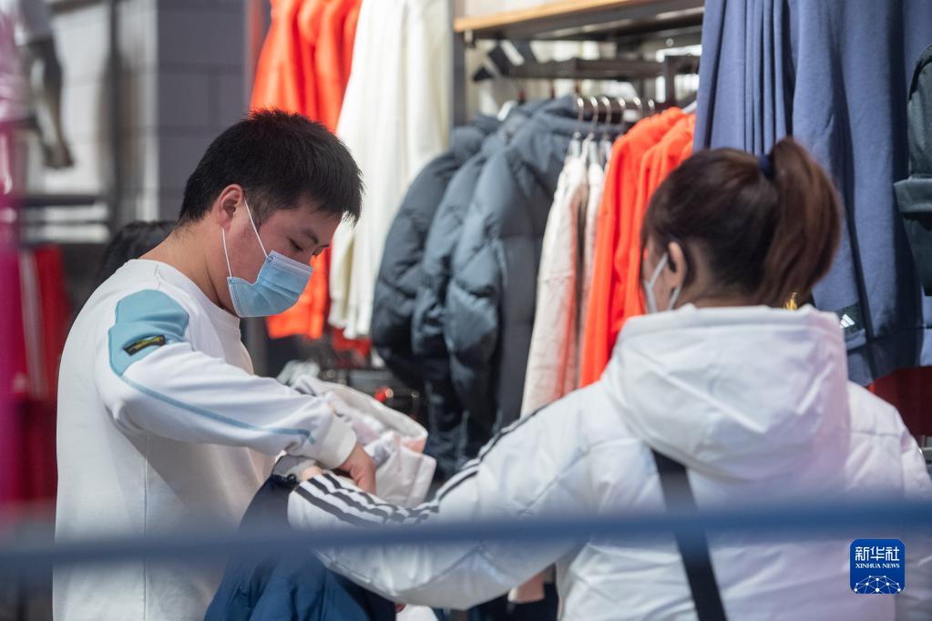 12月23日,在位于重慶解放碑商圈主打運動(dòng)品牌的重慶八一廣場(chǎng)內,市民游客選購商品。