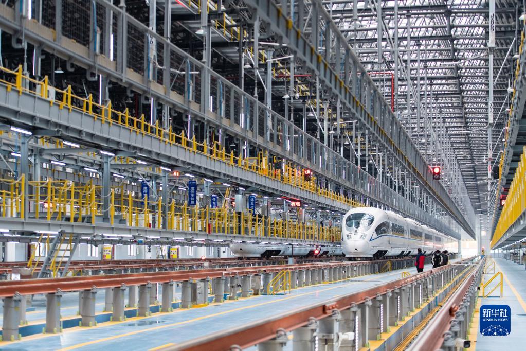 12月26日,一輛列車(chē)停放在渝廈高鐵長(cháng)沙西動(dòng)車(chē)運用所6線(xiàn)檢查庫。