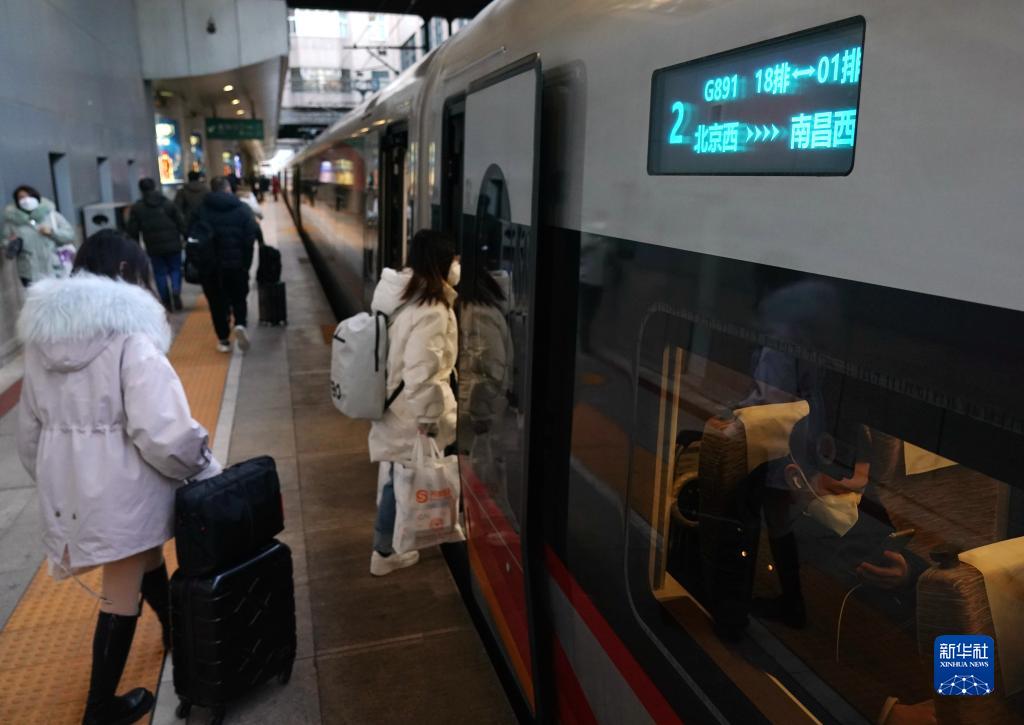 12月26日,旅客在北京西站乘坐G891次列車(chē)出行。