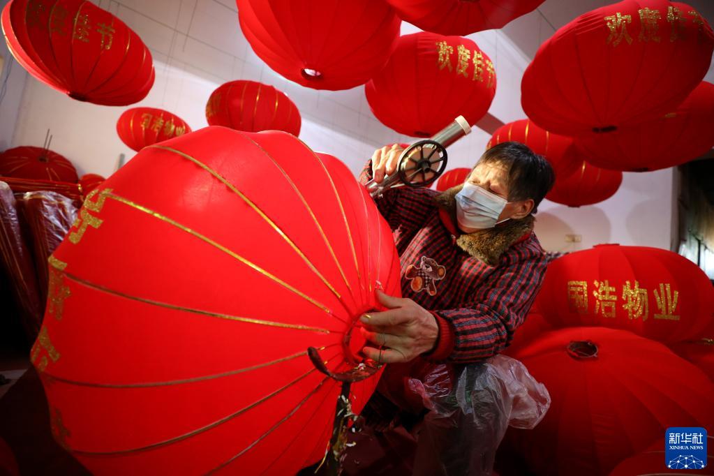 新年臨近,河南省焦作市溫縣北冷鄉許北張村燈籠作坊內一派忙碌景象,村民們加緊趕制大紅燈籠,供應節日市場(chǎng)。