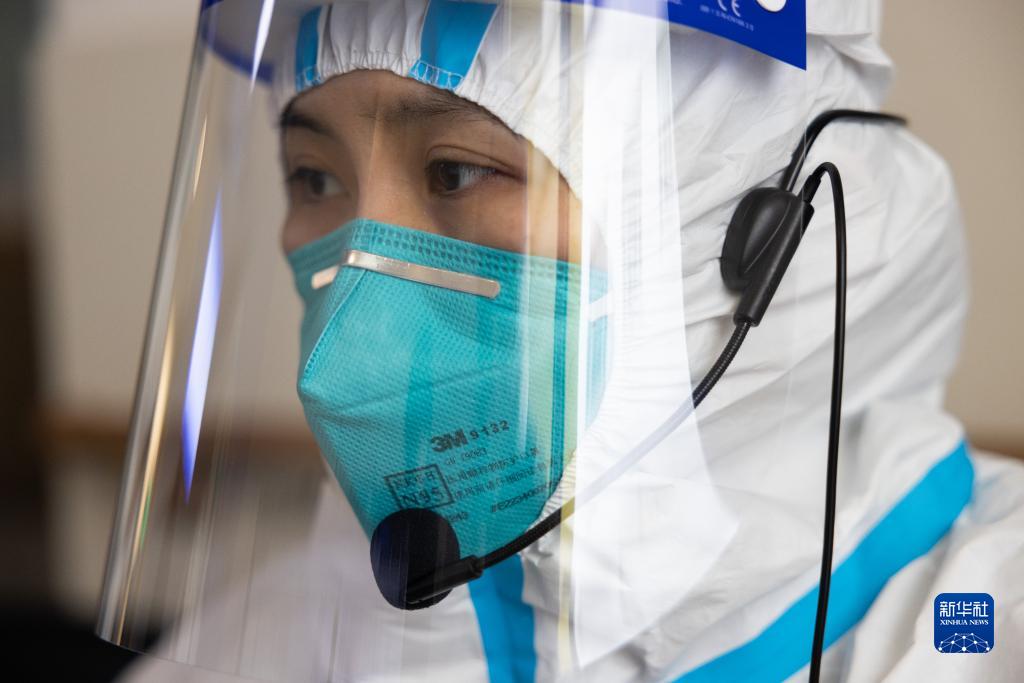 12月27日,在上海交通大學(xué)醫學(xué)院附屬新華醫院兒科發(fā)熱門(mén)診預檢臺前,頭戴話(huà)筒的護士在回答家長(cháng)提問(wèn)。