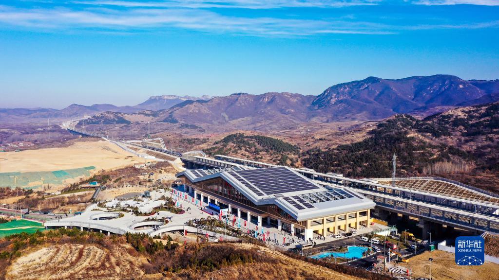 12月30日拍攝的濟(南)萊(蕪)高鐵雪野站(無(wú)人機照片)。