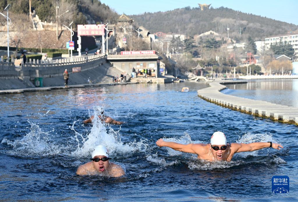 當日,河北省邯鄲市峰峰礦區的冬泳愛(ài)好者不畏嚴寒,在水中暢游,以這種特別的方式迎接新年的到來(lái)。