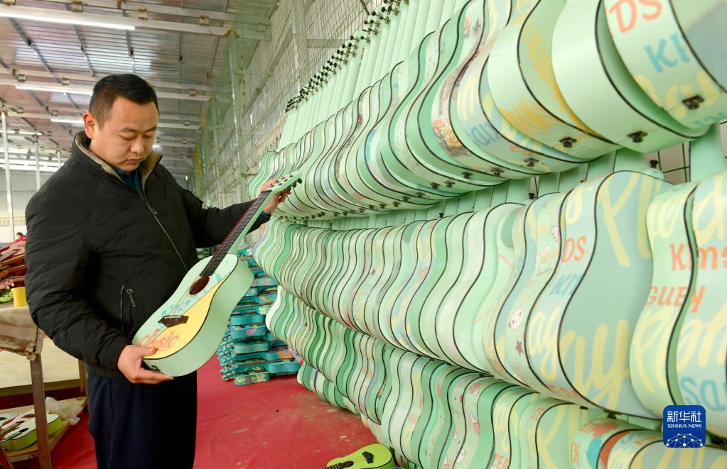 1月5日,技術(shù)人員在夏邑縣太平鎮劉花園村一生產(chǎn)車(chē)間抽檢吉他質(zhì)量。