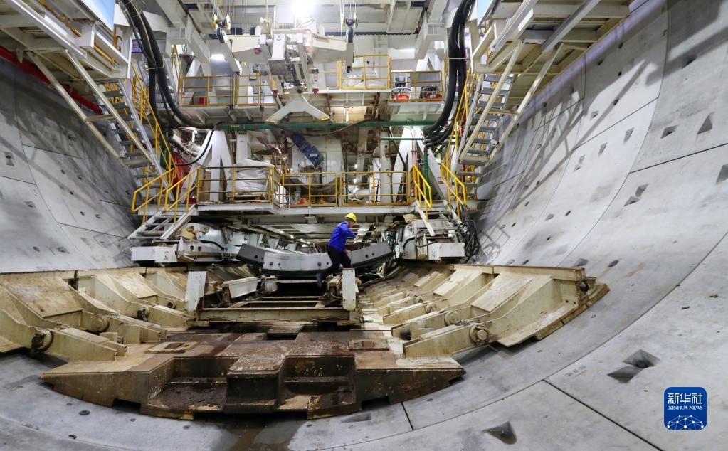1月6日,在中鐵隧道局上海市域鐵路機場(chǎng)聯(lián)絡(luò )線(xiàn)11標項目施工現場(chǎng),工人從管片吊機下走過(guò)。