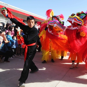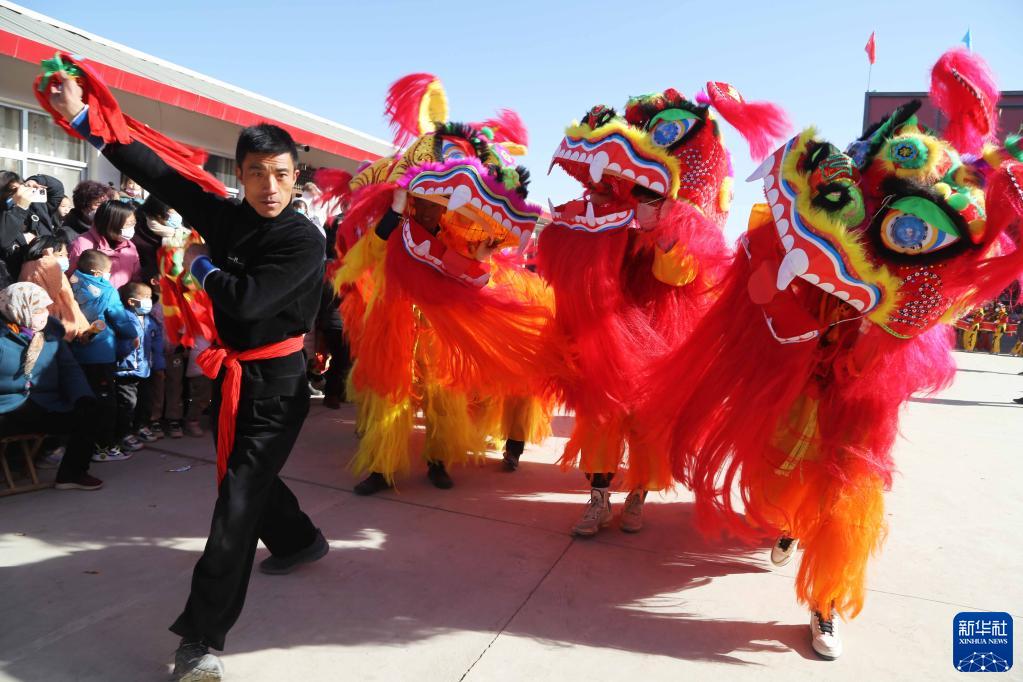 新春佳節臨近,甘肅省定西市的一些社火隊組織排練舞龍、舞獅、劃旱船等傳統社火節目,迎接新春佳節的到來(lái)。