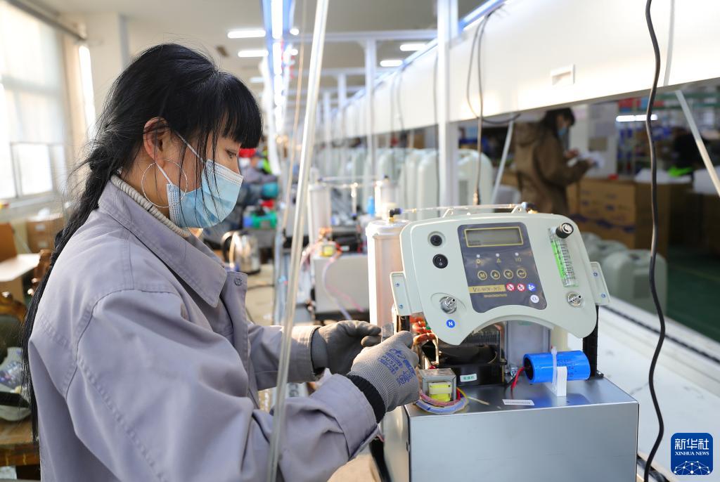 1月5日,沈陽(yáng)一家醫療企業(yè)的工人在生產(chǎn)制氧機。