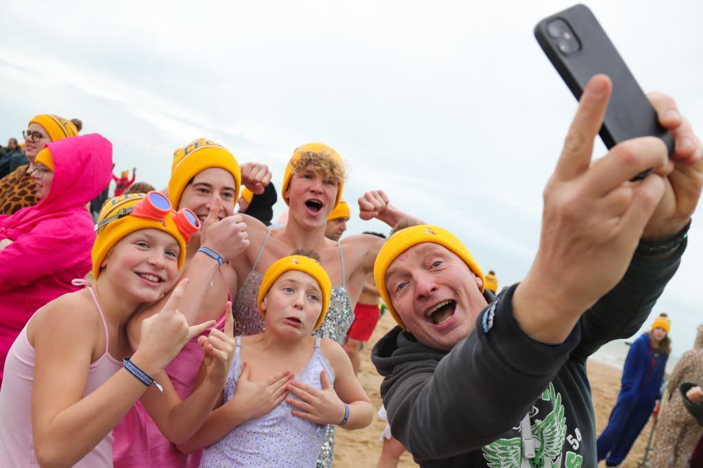 1月7日,人們在比利時(shí)奧斯坦德舉行的“跳北海慶新年”活動(dòng)上合影。