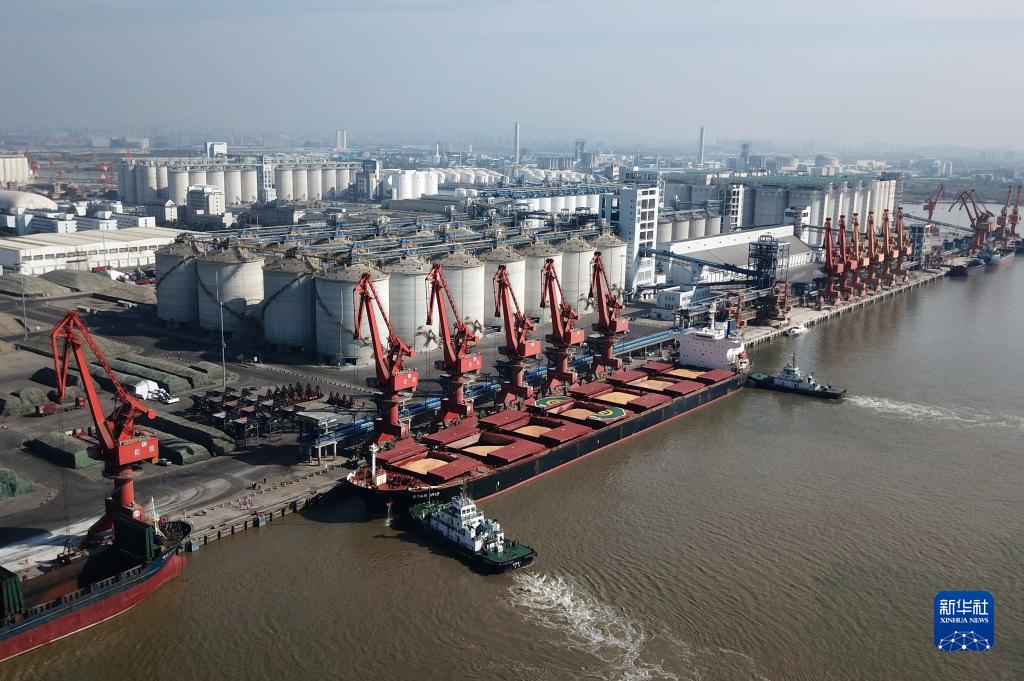 1月7日,載有6.8萬(wàn)噸巴西玉米的貨輪抵達廣東麻涌港。