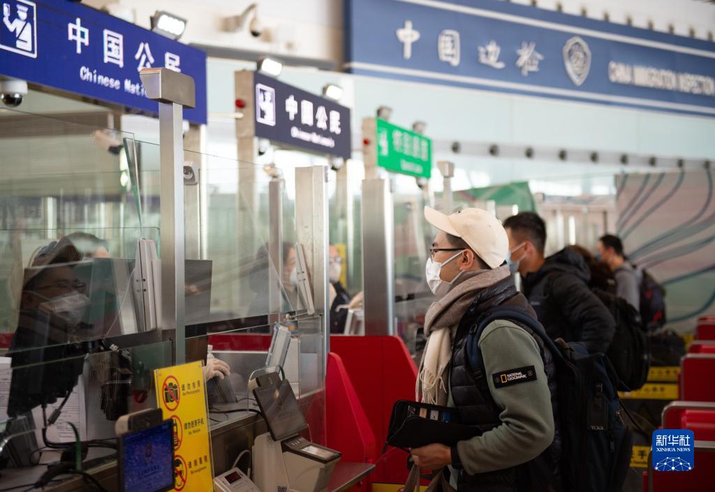 1月8日,入境旅客在首都國際機場(chǎng)T3-E邊檢查驗柜臺辦理入境手續。