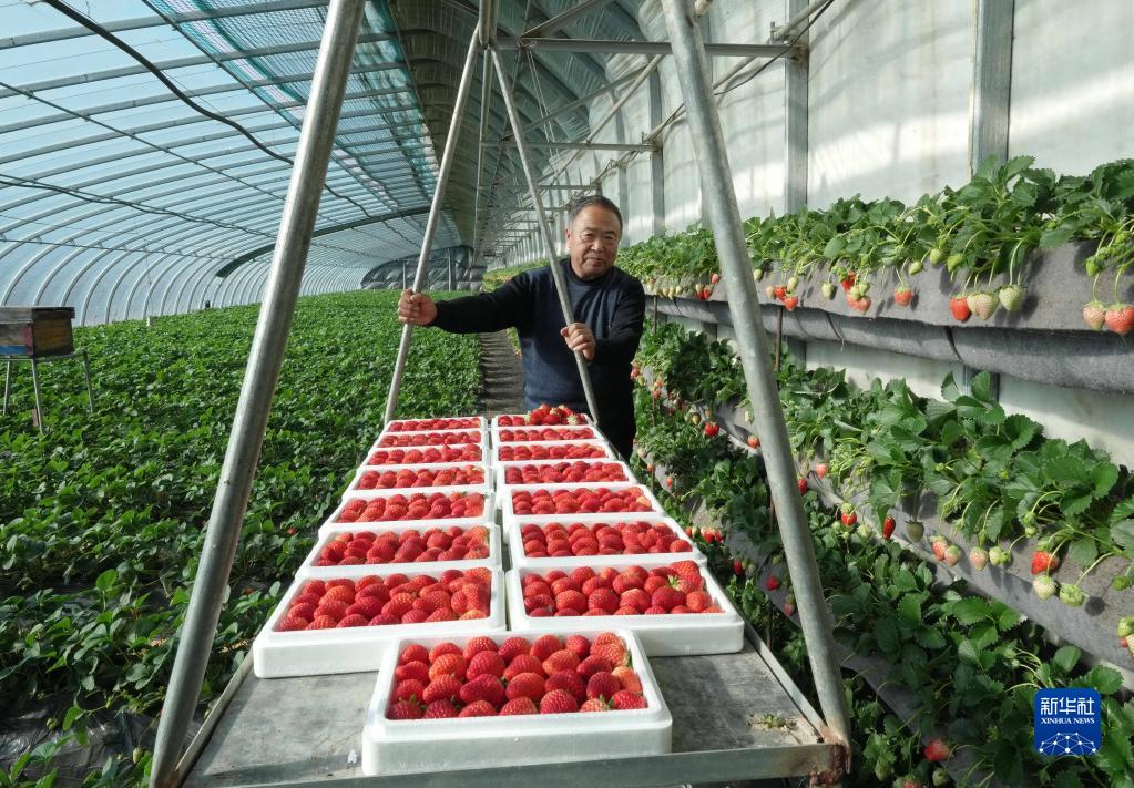 春節臨近,河北省昌黎縣種植的1萬(wàn)多畝大棚草莓陸續進(jìn)入采摘期,果農加緊采摘,供應市場(chǎng)。