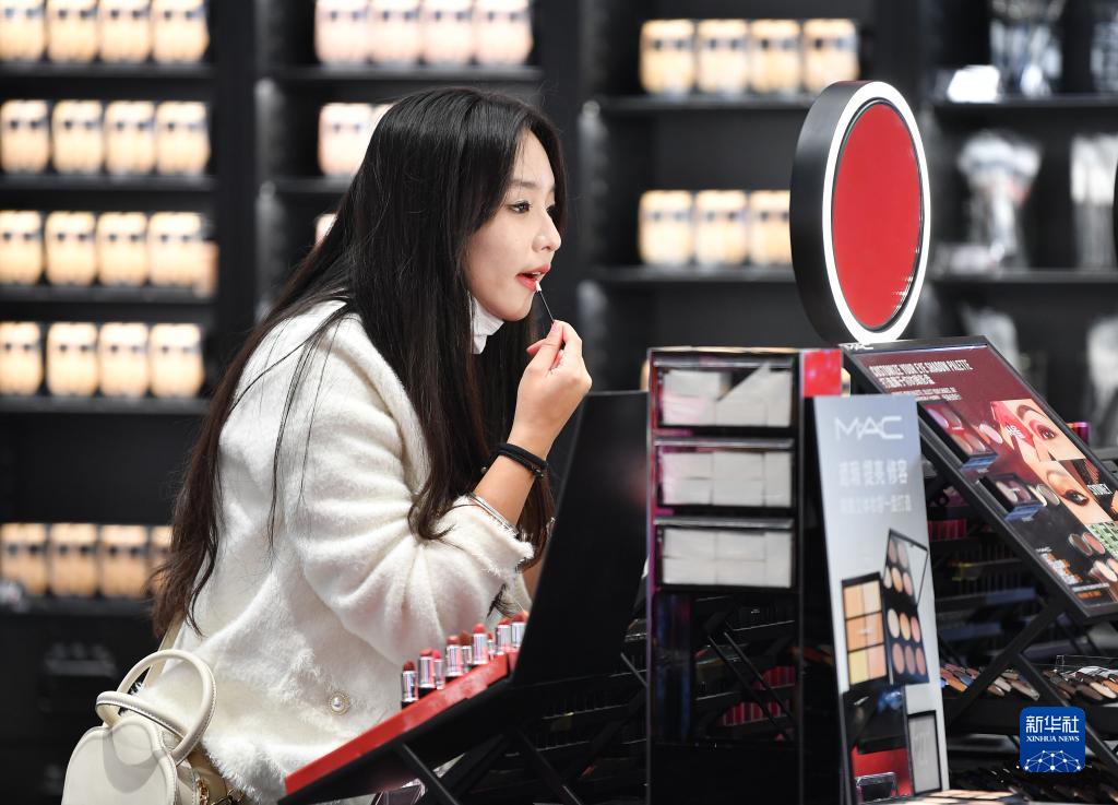 消費者在中免集團??趪H免稅城選購商品(2022年12月17日攝)。