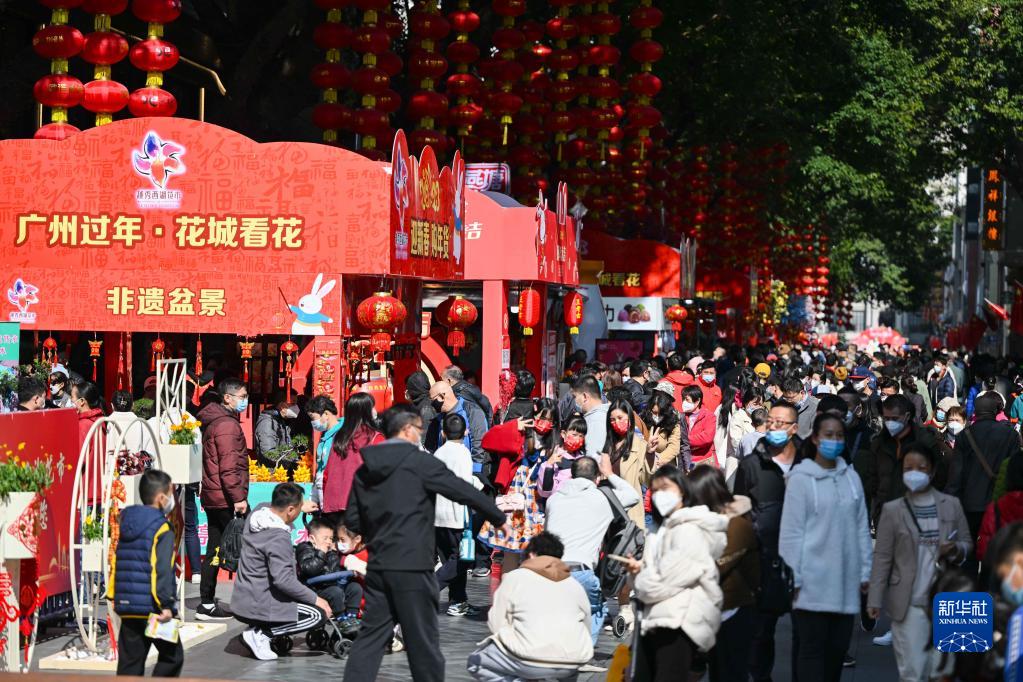 當日,廣州越秀西湖花市正式啟動(dòng),不少市民前來(lái)逛花市、選購鮮花,迎接新春佳節的到來(lái)。