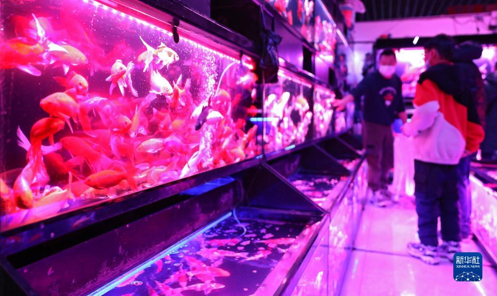 春節將至,遼寧省沈陽(yáng)市的觀(guān)賞魚(yú)市場(chǎng)熱鬧非凡。許多市民到這里選購觀(guān)賞魚(yú)作為年貨,寓意“年年有余”,為家中增添節日氣氛。