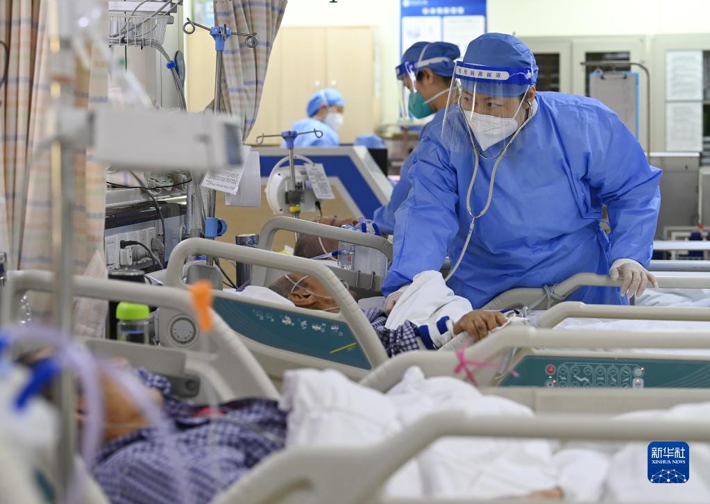 1月21日,北京大學(xué)第一醫院急診科副主任李曉晶在搶救室內為重癥患者查看病情。