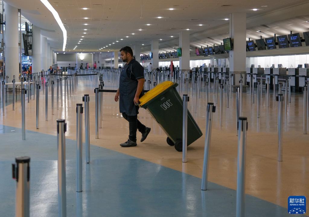 1月28日,在新西蘭奧克蘭國際機場(chǎng),一名工作人員經(jīng)過(guò)空蕩蕩的國際出發(fā)大廳。