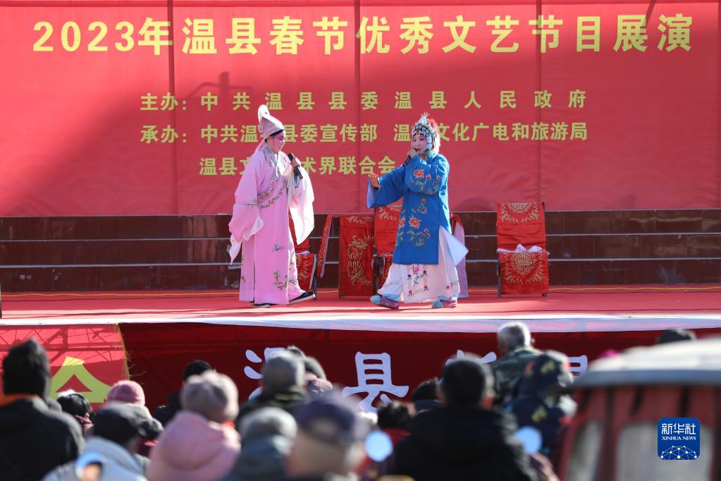 1月29日,在溫縣文化廣場(chǎng),演員在表演豫劇。