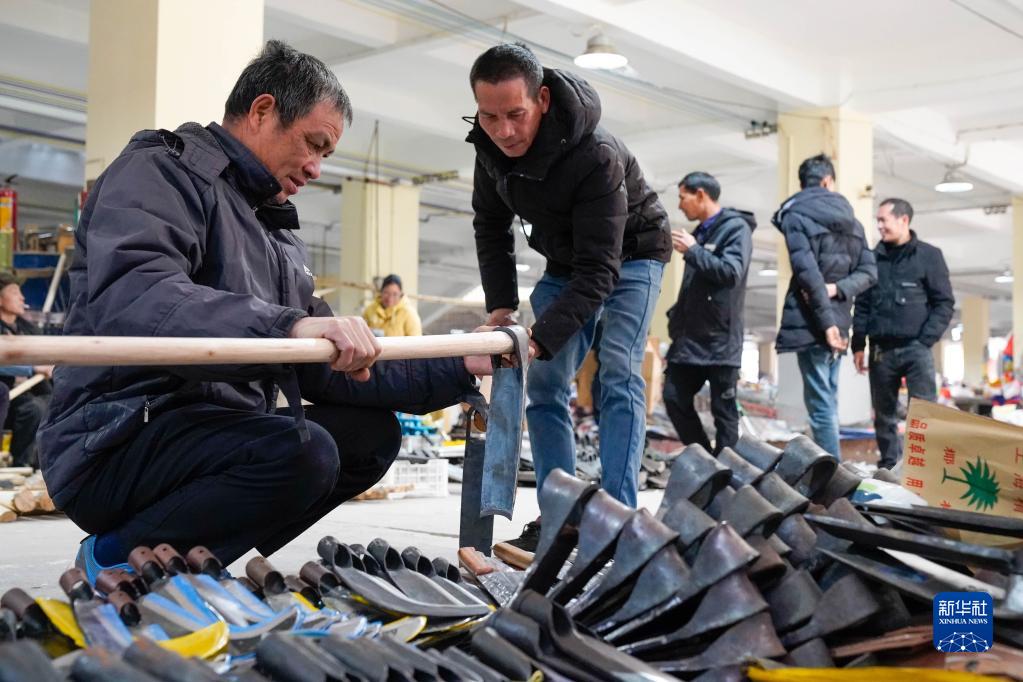 1月29日,人們在廣西金秀瑤族自治縣桐木鎮農貿市場(chǎng)選購農具。