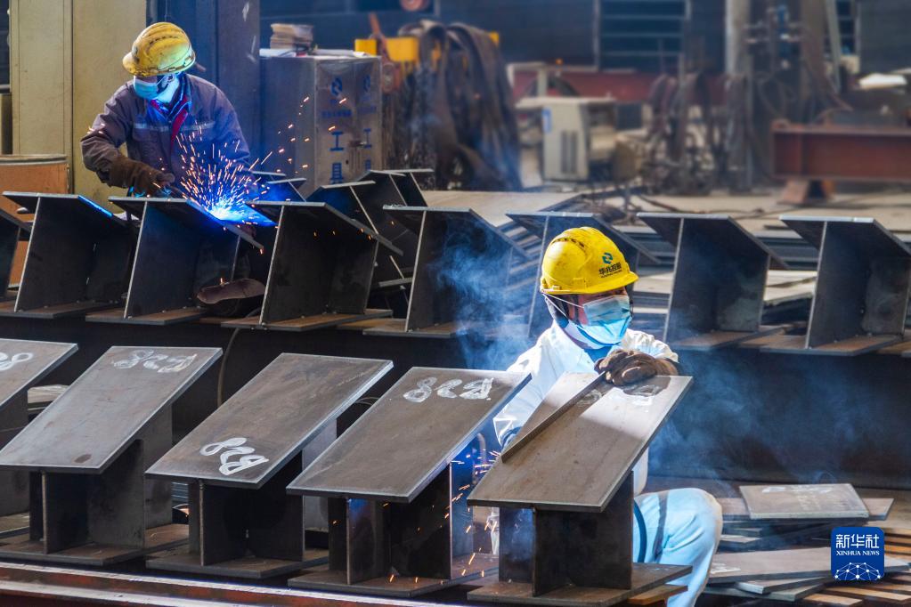 1月30日,在山西運城一家建筑公司的輕鋼車(chē)間,工人在進(jìn)行焊接作業(yè)。