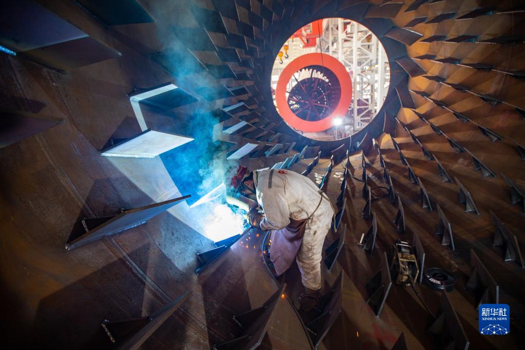 1月30日,在江蘇省海安市一家機械設備制造企業(yè),工人在車(chē)間內忙碌。