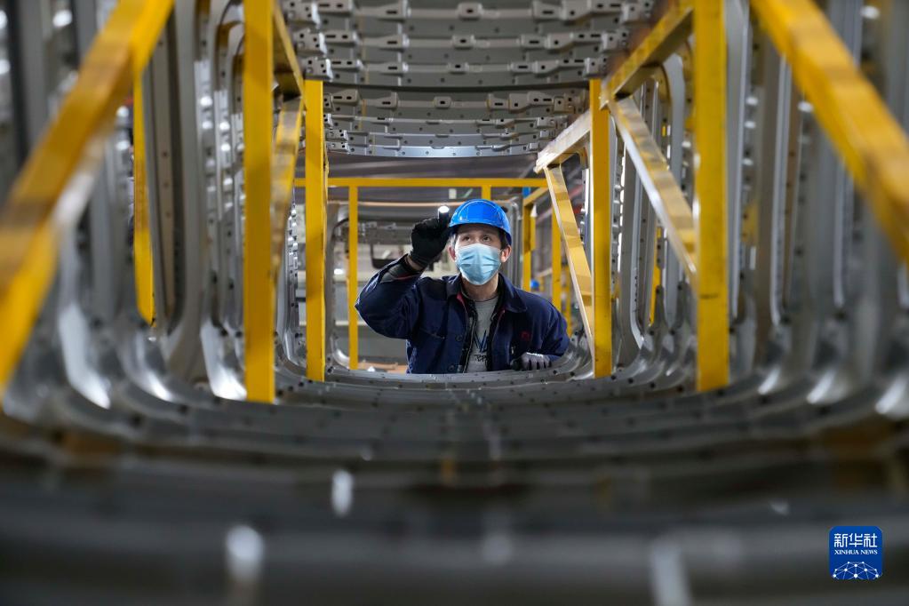 1月30日,在重慶市北碚區一家涂裝技術(shù)企業(yè),技術(shù)人員在檢查準備噴漆的汽車(chē)車(chē)身。