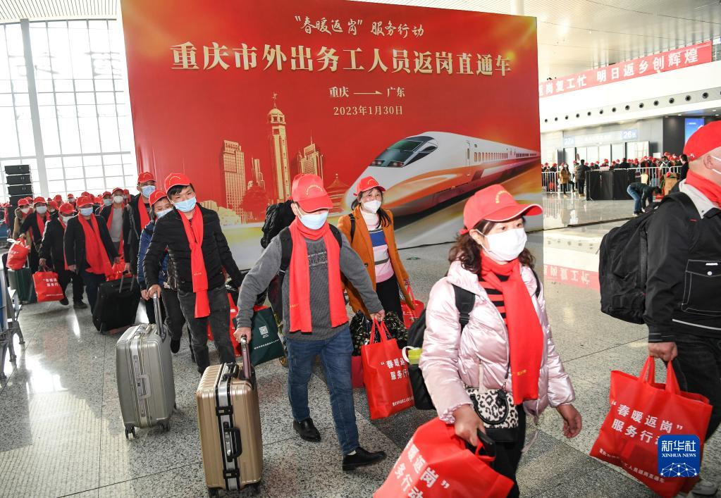 當日,由重慶西開(kāi)往廣州南的D4881次務(wù)工專(zhuān)列順利開(kāi)出,來(lái)自川渝兩地的約890名務(wù)工人員踏上返崗之路,這是2023年從重慶開(kāi)行的首趟務(wù)工定制專(zhuān)列。