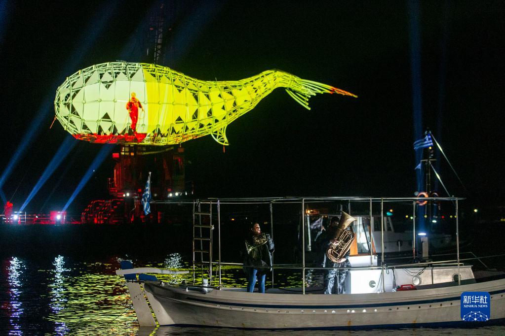 2月4日,在希臘雅典西部的埃萊夫西斯,人們在船上演奏音樂(lè ),慶祝2023“歐洲文化之都”活動(dòng)開(kāi)啟。