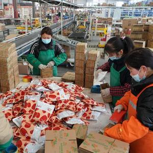 2月6日,在位于武功縣的京東物流陜西智能供應鏈中心,工作人員在包裝獼猴桃。