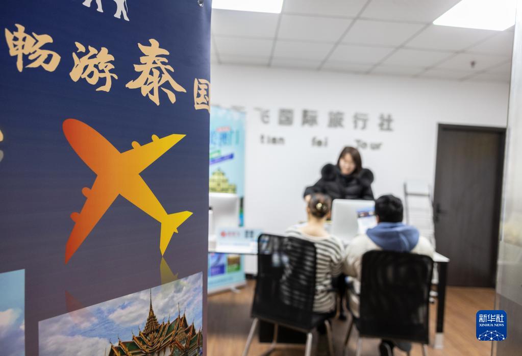 2月9日,市民在浙江省諸暨市一家旅游公司咨詢(xún)出境游的相關(guān)情況。
