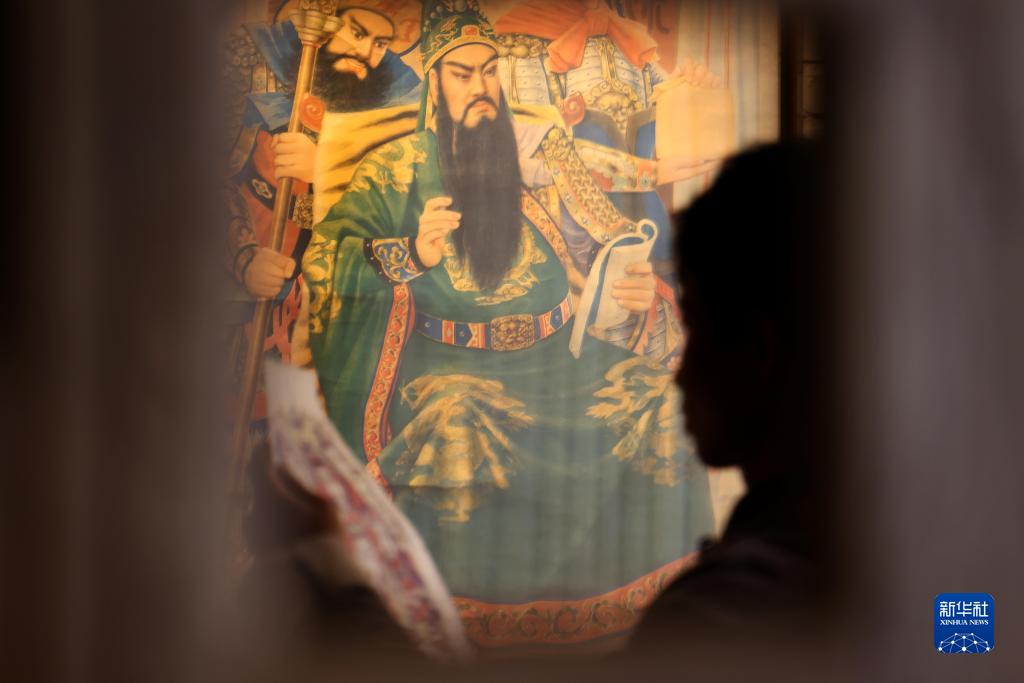 2月10日,在童壽記木版年畫(huà)工作室,童敏在研究年畫(huà)創(chuàng )作工藝。