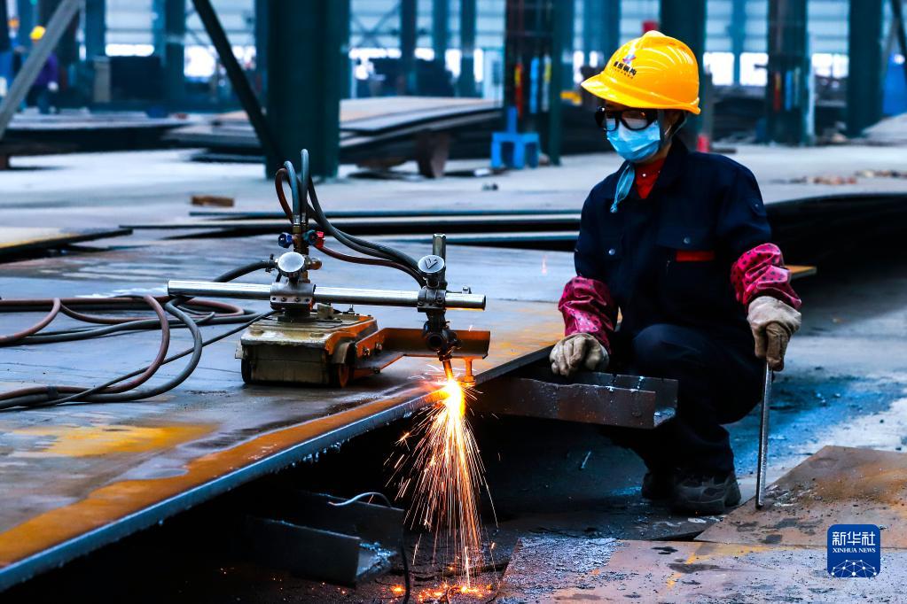 2月10日,工人在江西省九江市湖口縣高新技術(shù)產(chǎn)業(yè)園區內的橋梁構件生產(chǎn)廠(chǎng)區工作。