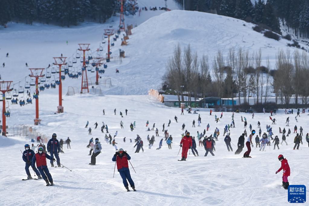 滑雪愛(ài)好者在新疆絲綢之路國際度假區滑雪場(chǎng)滑雪(2022年12月5日攝)。新華社記者 丁磊 攝