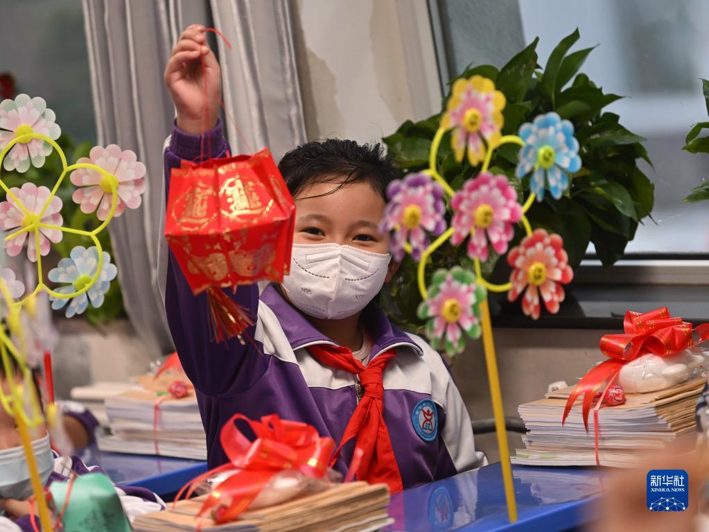 2月13日,在西寧市城西區文匯小學(xué),學(xué)生在展示自己的假期手工作業(yè)。