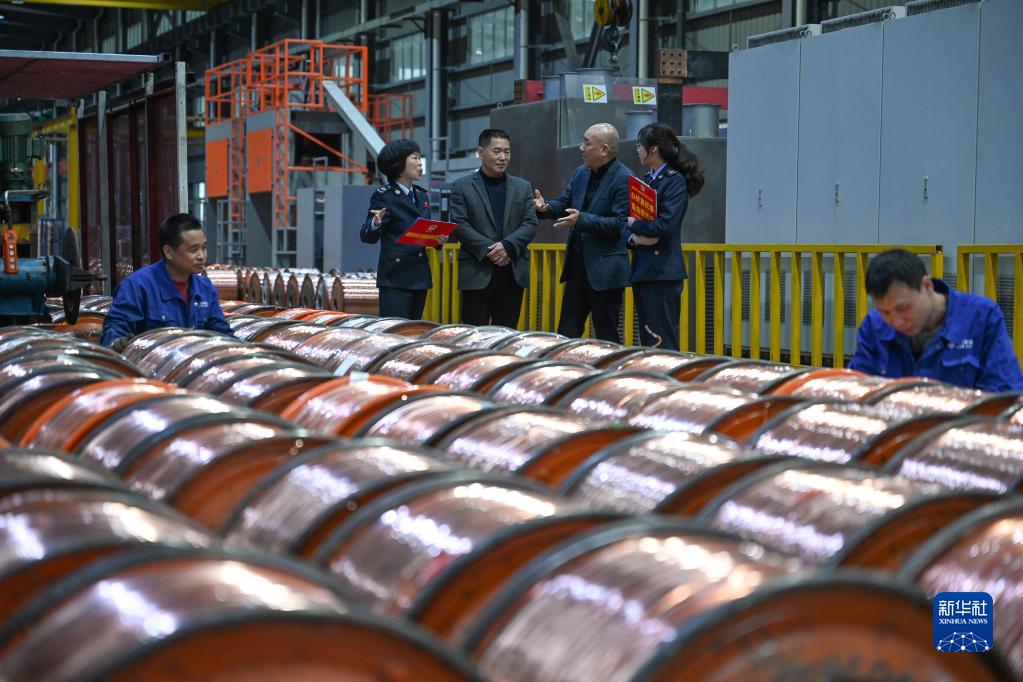 2月13日,在福州禮恩科技有限公司生產(chǎn)車(chē)間,國家稅務(wù)總局閩清縣稅務(wù)局工作人員向企業(yè)負責人介紹稅惠政策。