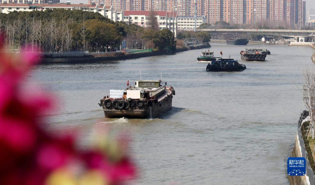 2月16日,貨船行駛在京杭大運河江蘇蘇州段。