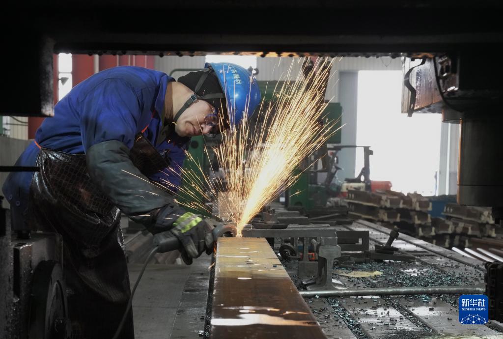 2月16日,工人在秦皇島市一家鐵路道岔生產(chǎn)企業(yè)的車(chē)間工作。