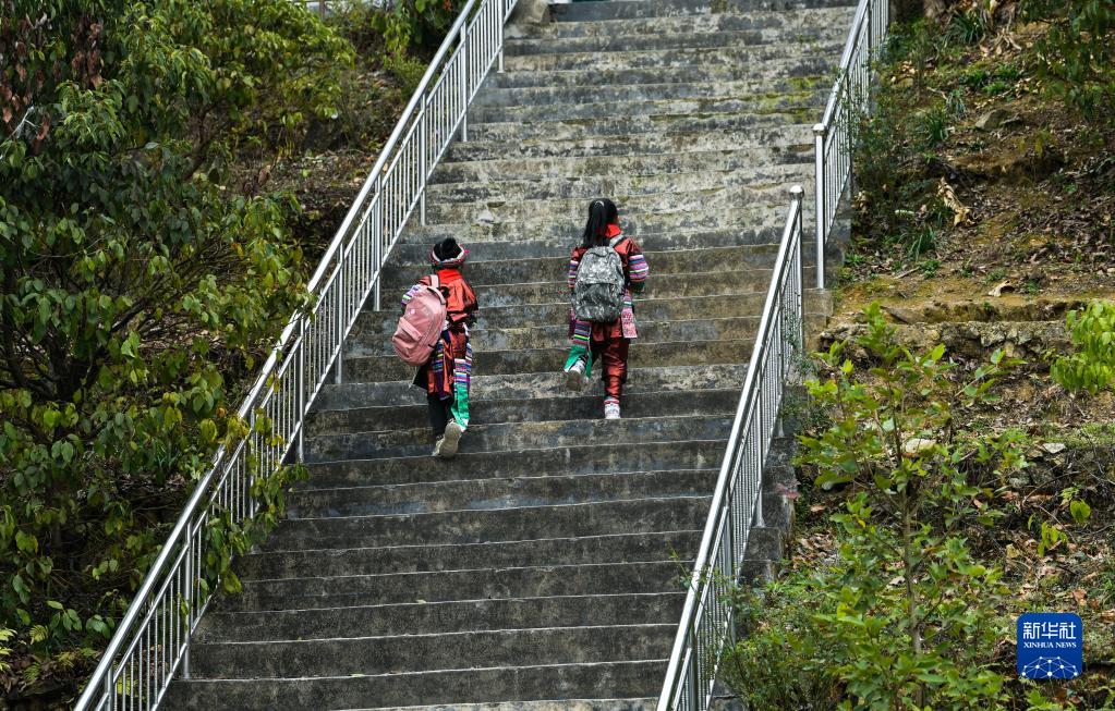 2月16日,貴州省從江縣西山鎮中寨教學(xué)點(diǎn)學(xué)生在放學(xué)途中。