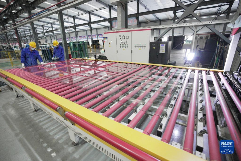 2月17日,在中建材佳星玻璃(黑龍江)有限公司車(chē)間內,工作人員在智能生產(chǎn)線(xiàn)旁作業(yè)。