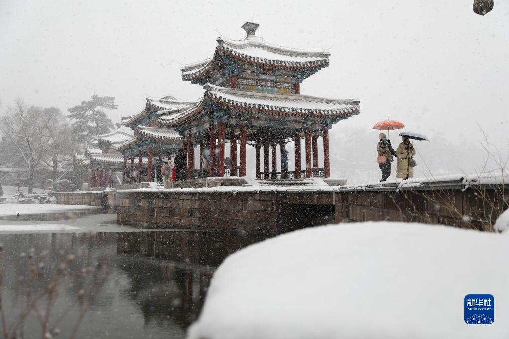 2月18日,游客在承德避暑山莊賞雪游玩。