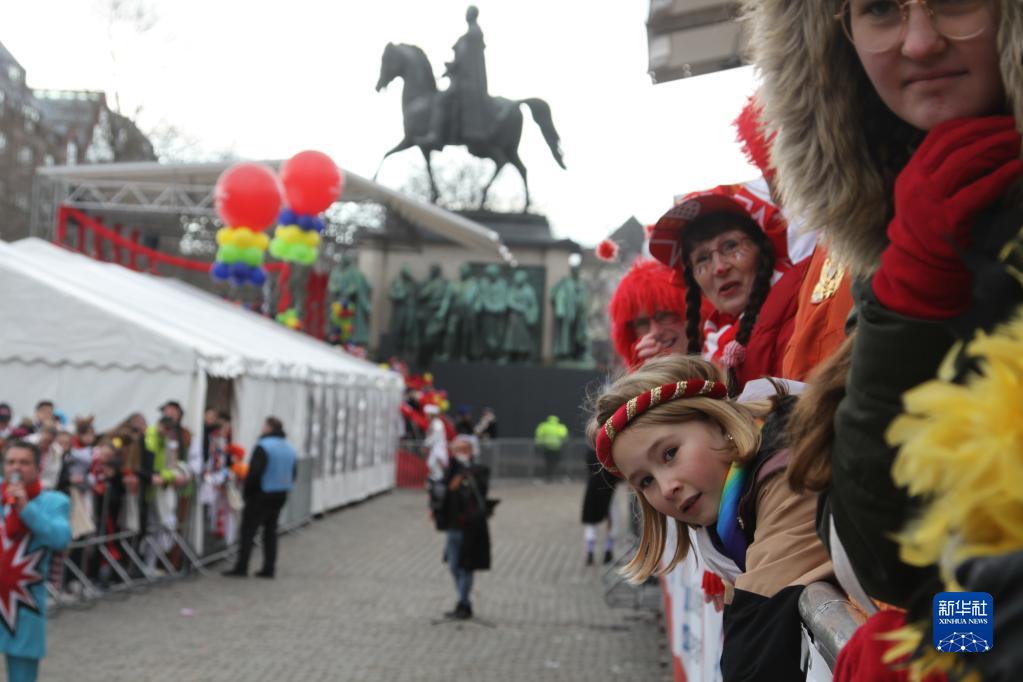 2月20日,狂歡者們在德國科隆觀(guān)看“玫瑰星期一”游行。