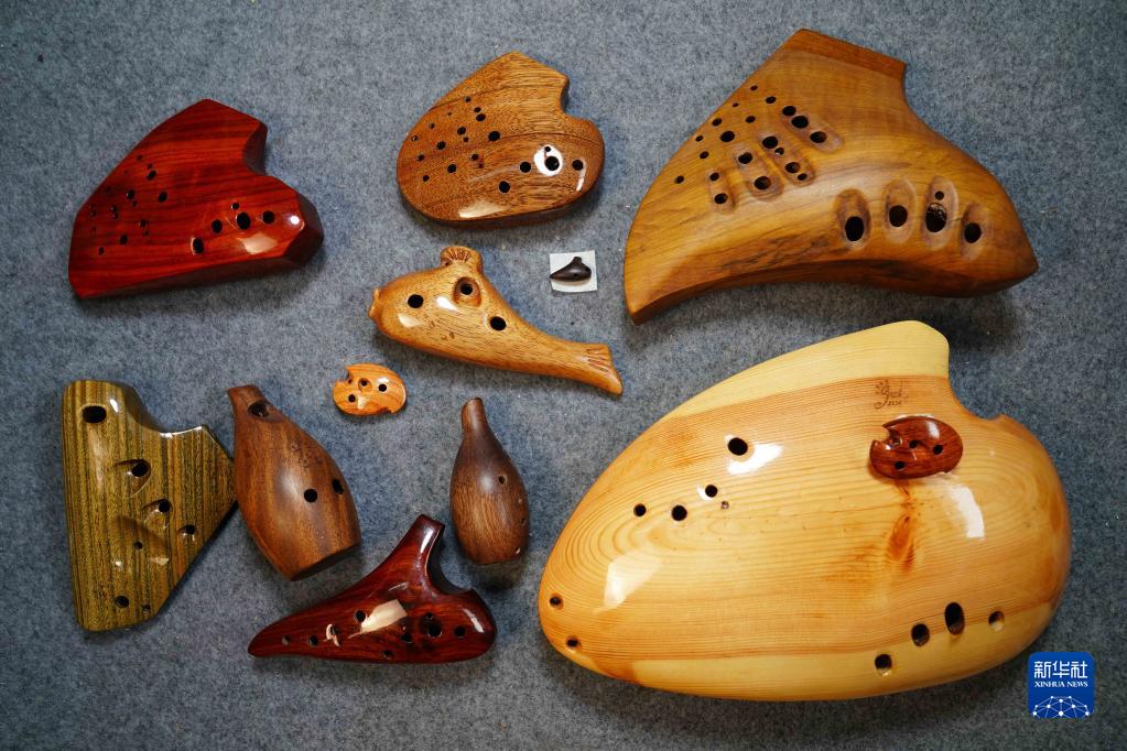 這是陶笛藝人侯義敏制作的各種木質(zhì)陶笛(2月20日攝)。