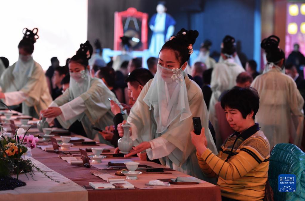 2月22日,在“宋元海絲宴”推介儀式現場(chǎng),工作人員在為嘉賓端茶上酒。