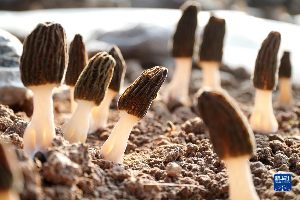 2月22日,在山東省成武縣汶上集鎮,羊肚菌已經(jīng)成熟等待收獲。
