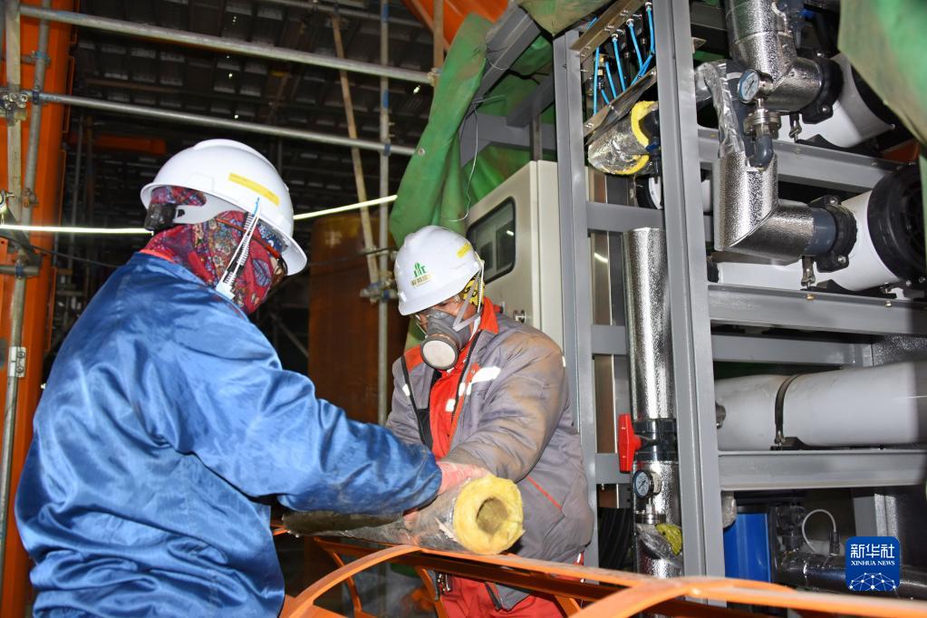 2月22日,工人在渤中19-6凝析氣田一期CEPA(中心處理平臺)組塊內進(jìn)行管線(xiàn)安裝作業(yè)。